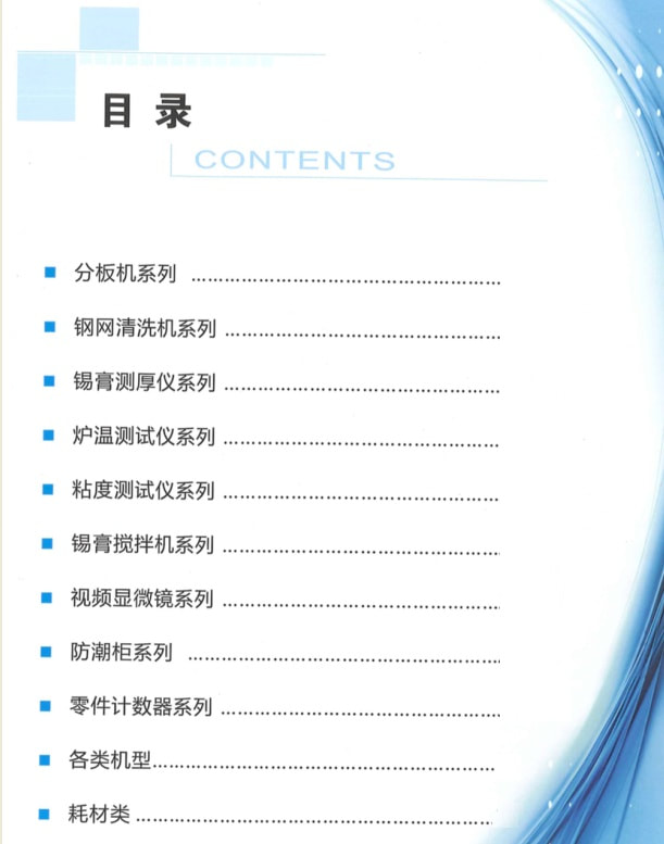 最新周邊儀器設備 -分板機系列- -鋼網清洗機系列- -錫膏測厚儀系列- -爐溫測試儀系列- -黏度測試儀系列- -錫膏攪拌機系列- -視頻顯微鏡系列- -防潮櫃系列- -零件計數器系列- -各類機型- -耗材類-